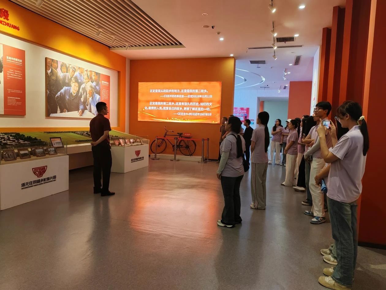 为深入了解同福在乡村振兴领域的创新实践,小分队前往塔元庄同福乡村振兴示范园参观。讲解员引领大家参观了示范园的产业展厅,围绕组织建设、生态循环、合作联盟、乡村文旅、田园康养、同福产业六大部分,详细介绍了该乡村振兴示范园的目标定位、产业布局及发展现状。讲解员结合沙盘模型及实际案例,全方位、立体化地阐释了示范园在推动产业兴旺、促进农民增收、改善乡村环境方面的“同福模式”及其取得的阶段性成果与未来规划。