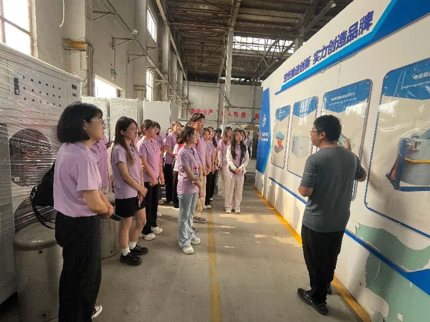 活动当日,小分队成员准时从公司南门出发,满怀期待前往河北爱迪尔电气有限公司。抵达后,企业负责人热情接待,并带领同学们深入生产车间与研发中心进行参观讲解。在参观过程中,工作人员详细介绍了爱迪尔电气的发展理念、前沿技术设备、主营业务等内容。作为典型的专精特新中小型企业,它积极响应绿色发展理念,将促进可持续发展与实现碳达峰、碳中和的目标融入企业发展战略,深耕电磁泵等领域,在铝加工制造设备上展现硬核实力,其主要产品包括电磁泵、铝熔炉用电磁搅拌器、电磁搅拌铸造系统EMSC以及电磁翻腾搅拌炉。值得一提的是,这些产品助力企业实现铝废品回收率超95%,远高于常规的60%,让易拉罐等含铝废品回收利用走上了绿色发展的道路。在技术层面,电磁泵等设备打破国际垄断,目前全球仅中美有同类布局,彰显出企业自主创新的强大底气。企业更是以8%的营收投入研发,且超三分之一的人员专注研发工作,如此“舍得”的投入,为企业筑牢了技术护城河。