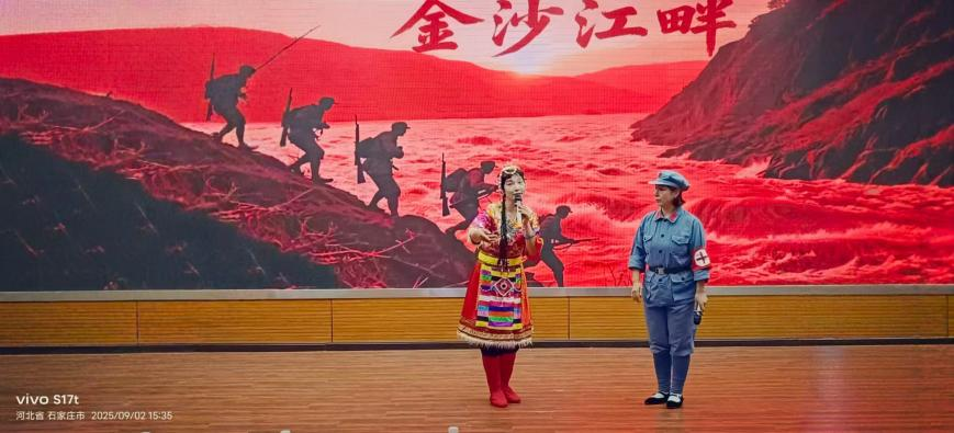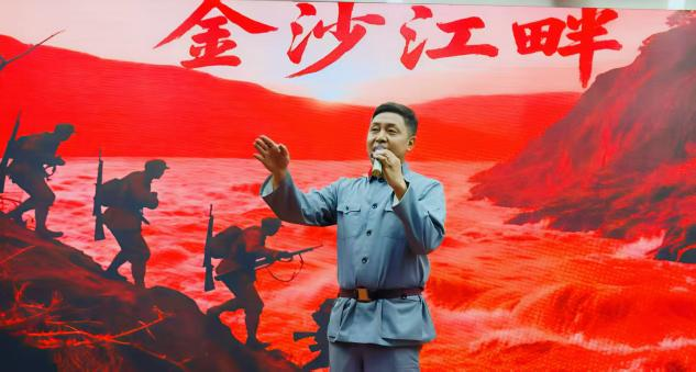 互动环节结束后,石晓飞、刘继红、马红华老师们以及威廉希尔官网的同学们共同带来了《金沙江畔》的戏曲演绎。演员们的表演不仅让大家重温了红军长征过金沙江时的峥嵘岁月,更让大家感受到了军民同心的深厚情谊。
