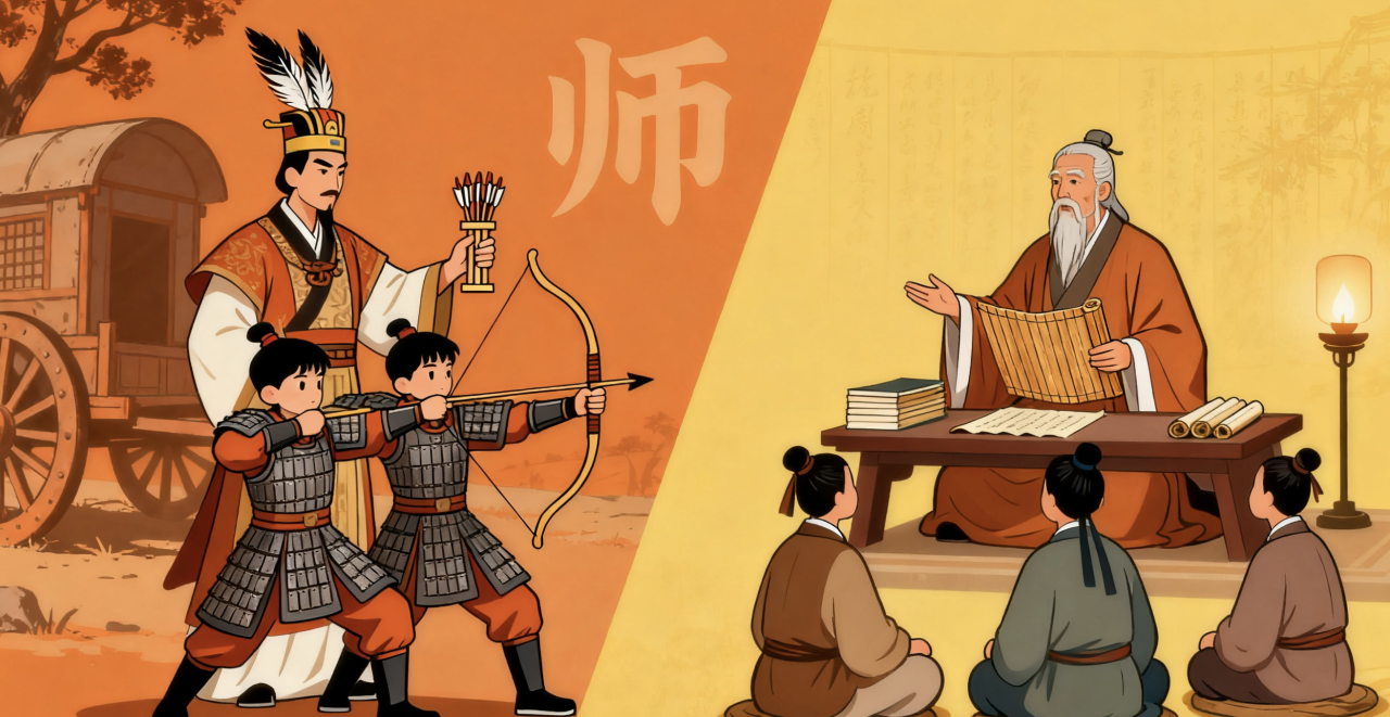 早在商周时期,“师”多为军中教习,传授射御之术,是武力与纪律的象征。