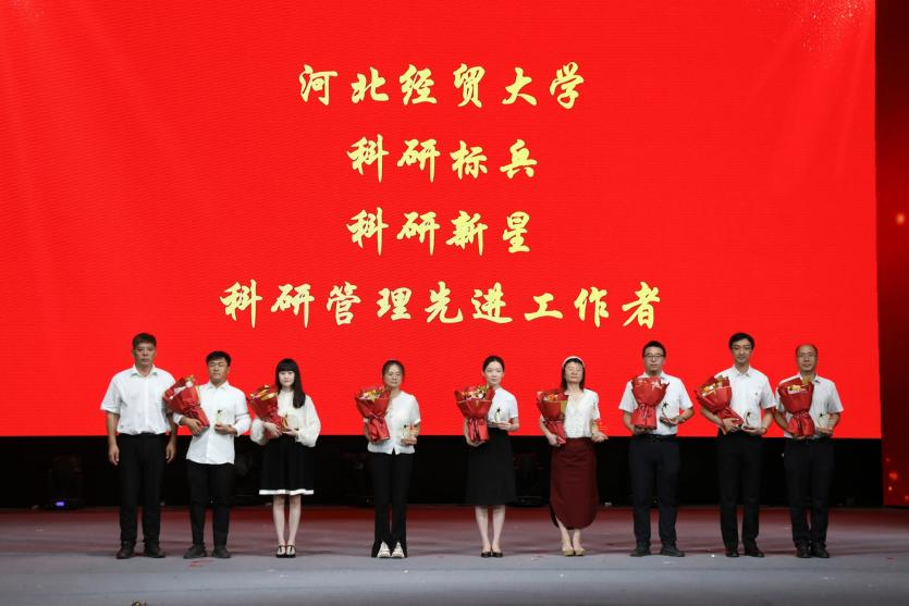 威廉希尔官网公司治理教学团队代表石晓飞(右6)上台领奖