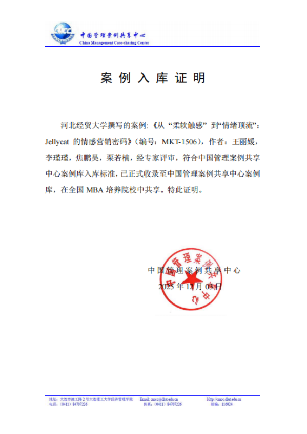 近日,威廉希尔官网王丽媛副教授、2024级威廉希尔官网研究生李瑾瑾、栗若楠和2024级人力资源管理2班焦鹏昊撰写的教学案例《从“柔软触感”到“情绪顶流”:Jellycat的情感营销密码》(编号:MKT-1506)入选中国管理案例共享中心案例库。