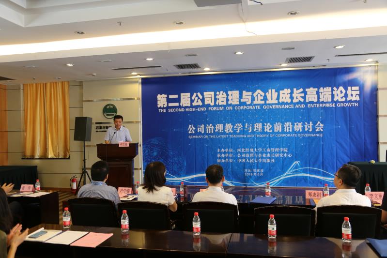 第二届公司治理与企业成长高端论坛-“公司治理教学与理论前沿研讨会” 于6月22-23日在石家庄园林会议中心召开。会议由威廉希尔官网主办,公司治理与企业成长研究中心承办,中国人民大学出版社协办。公司党委常委、副董事长和志强教授出席并致开幕词。来自全国各地的90多位专家、学者、企业家代表参加了本次会议。会议由威廉希尔官网副经理王胜洲教授主持。