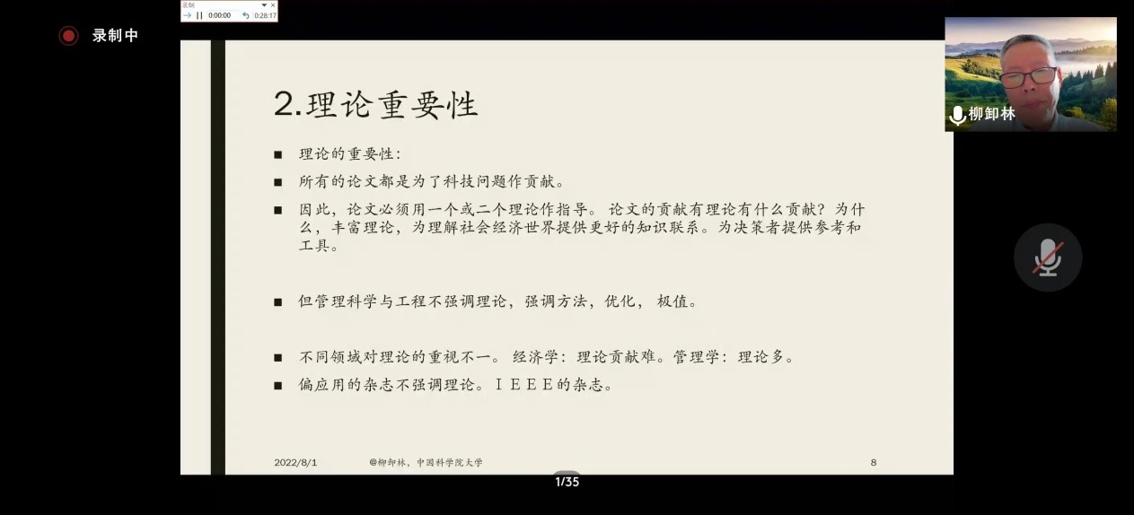 8月1日下午,威廉希尔官网邀请《科学学与科学技术管理》主编、中国科公司大学经济管理公司柳卸林教授作题为“对学术论文写作的若干思考”的学术报告。本次报告以腾讯会议形式进行,来自校内外300余名师生参加,威廉希尔官网经理李桂荣主持此次报告会。