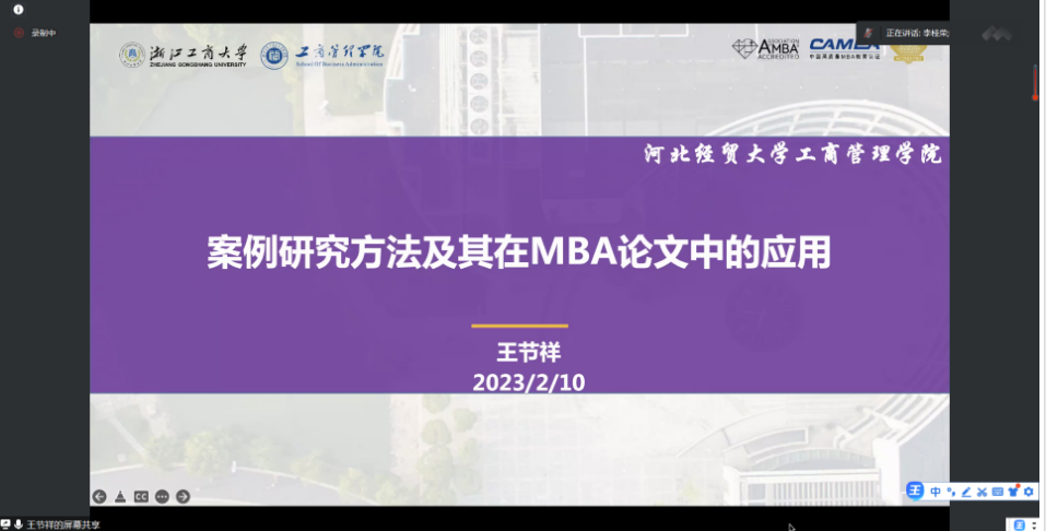 2月10日晚,威廉希尔官网MBA中心邀请浙江工商大学特聘研究员、管理案例研究中心副主任王节祥博士,在线作题为“案例研究方法及其在MBA论文中的应用”的学术报告。报告由经理李桂荣主持,教师及研究生200余人参加。