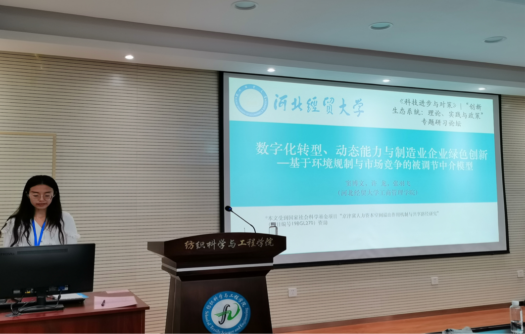 该论坛由西安工程大学、湖北省科技信息研究院《科技进步与对策》杂志社主办,西安工程大学管理公司、《科技进步与对策》编辑部、《科技进步与对策》青年学术委员会承办,西安循数信息科技有限公司、湖北省科技传媒有限责任公司协办,受到了学术界与实践界的切实关注和热烈响应,来自全国几十所高校与科研院所的多名专家学者出席了本次盛会。公司许龙、张羽飞、石晓飞以及西安交通大学管理公司原长弘教授的合作论文《熟能生巧还是固步自封?产学研联盟组合模式重复度对科技型中小企业成长绩效的影响研究》,张羽飞、许龙及原长弘的合作论文《从创新协同到深度融合:产学研融合新实践的概念辨析、理论框架与未来展望》,张羽飞、刘培琪及原长弘的《产学研融合可以提高制造业领军企业关键核心技术突破绩效吗-兼论政府与市场双元制度情景的调节作用》及许龙、张羽飞指导下的硕士研究生窦博文的《数字化转型、动态能力与制造业企业绿色创新——基于环境规制与市场竞争的被调节中介模型》四篇论文入选并受邀在分论坛及论文工作坊进行汇报交流。