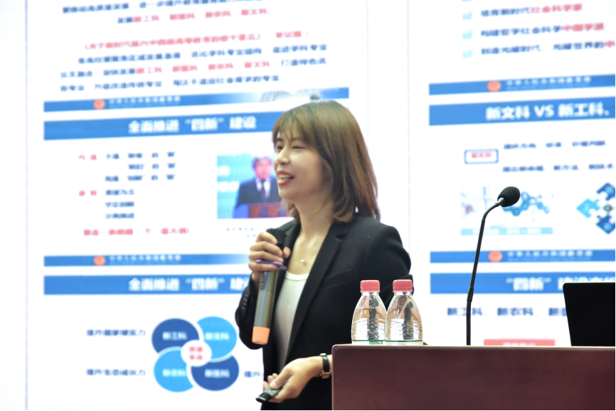 吕慧教授在教学创新领域造诣颇深,成果斐然。近年来,她接连斩获第四届全国高校教师教学创新大赛一等奖、第五届全国高校混合式教学设计创新大赛特等奖、第八届西浦全国大学教学创新大赛一等奖等诸多国家级高水平教学赛事的桂冠。吕教授以其深厚的学术底蕴和丰富的教创经验,向在座的老师们深入剖析了新文科建设的整体特征,从学科专业的多元融合、在学规模的发展趋势以及“四新”角度的创新理念等多个维度进行了全面系统的阐述。