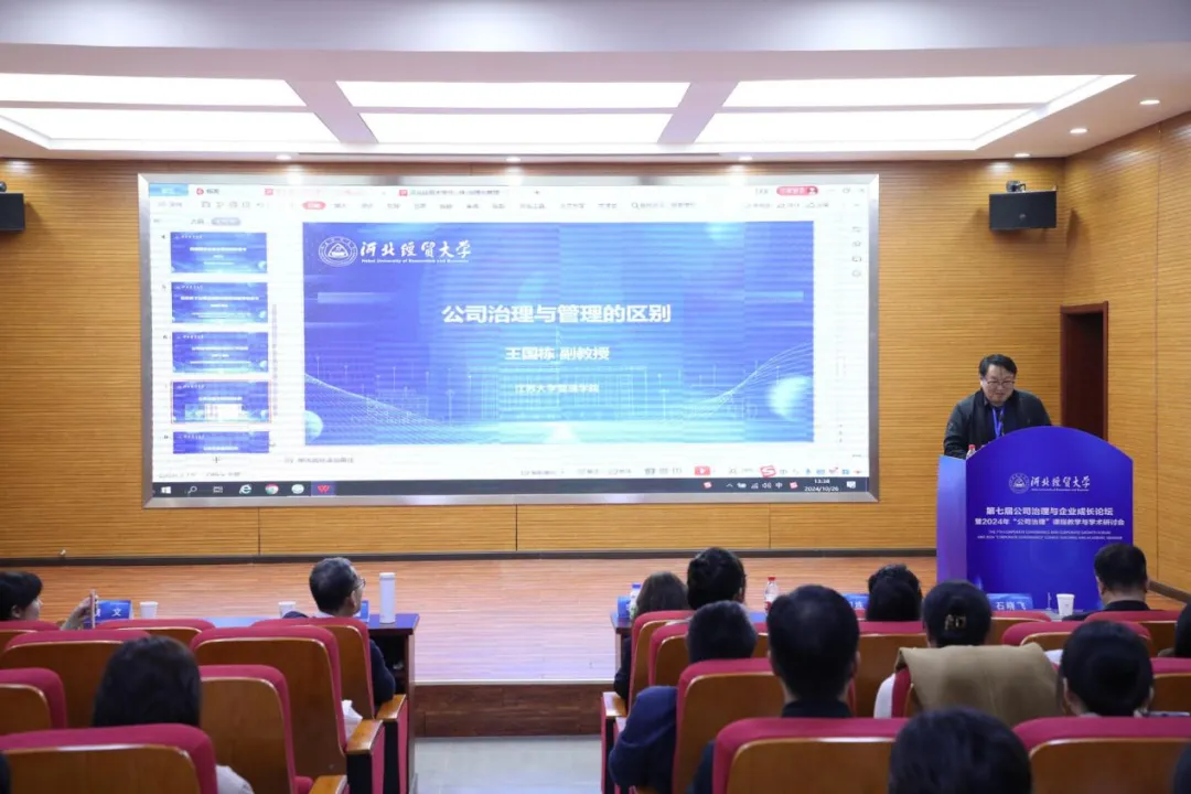 江苏大学管理公司王国栋副教授作题为“公司治理与管理的区别”的课程展示,报告从公司治理与公司管理的区别入手,指出公司治理关注所有权配置与制衡,而公司管理则注重经营权的执行与实施。同时,他还就公司治理教材的完善提出建议,期望通过共同努力,打造更加优质的教学资源