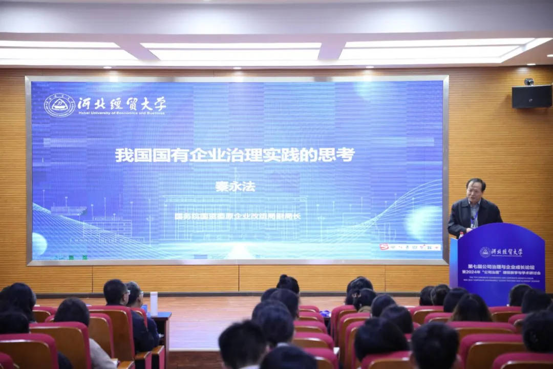 国务院国资委原企业改组局副局长秦永法作题为“我国国有企业治理实践的思考”的主题报告。报告深入探讨了中国国有企业改革和公司治理的背景、内容、进展和挑战,强调了在党的领导下进行的一系列制度安排和改革措施,旨在提升国有企业的治理能力和市场竞争力,同时指出了改革过程中存在的误区和挑战,如董事会模式的标准化和公司治理模式的僵化,并对未来的公司治理发展方向提出了建议,包括坚持党的领导、推动市场经济体制改革、提高核心竞争力,以及根据中国国情和文化传统制定适合的治理结构等内容。