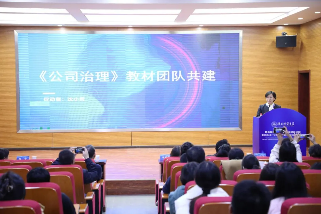 专题报告环节,由威廉希尔官网副经理石晓飞教授主持,江苏大学王国栋副教授、苏州经贸职业技术公司沈小秀博士围绕“公司治理”教学带来精彩的课程展示和分享。