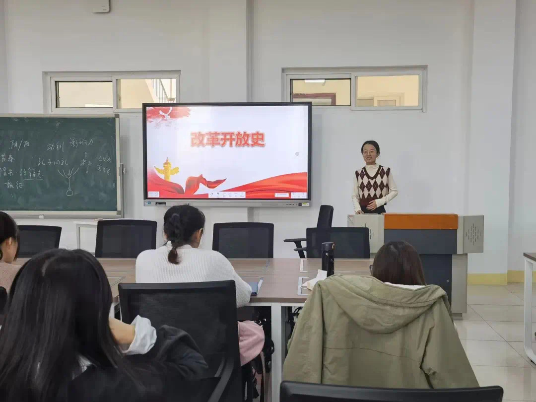 主讲人窦博文从改革开放的历史回顾、成就和伟大意义三个方面开展演讲。首先,她向同学们梳理了改革开放的历史脉络。随后,她以视频的形式向同学们展示了改革开放给中国社会带来翻天覆地的变化。让同学们感受到改革开放的成果体现在生活的方方面面,涉及经济、科技、外交、民生等多个方面。紧接着,她向同学们讲述了改革开放的伟大历史意义,帮助同学们了解到改革开放是我们党的历史上一次伟大觉醒,正是这个伟大觉醒孕育了我们党从理论到实践的伟大创造。同时,她鼓励同学们要通过学习改革开放史,更好地领悟党在成长历程中经历的坎坷,从中汲取成功经验,将其继承下去、传承下去,进一步发扬光大。