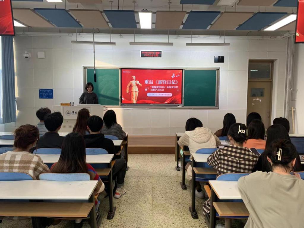 为弘扬新时代雷锋志愿服务精神,进一步深化全体党员对“奉献、友爱、互助、进步”的理解,2023年3月6日下午,工商管理员工党支部全体党员及入党积极分子在支部书记宋欣老师的带领下,在308教室开展了“重温雷锋日记,弘扬雷锋精神”系列党性培养暨党建促团建活动,19、20级党员及21级工商管理全体积极分子悉数参加。