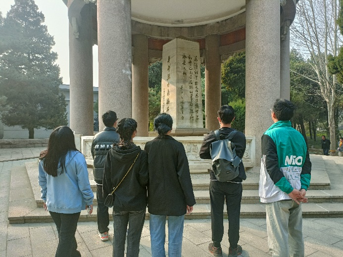 在庄严肃穆的烈士纪念碑前,各位党员向烈士集体鞠躬致敬,向革命先烈表达自己深深的缅怀之情。大家在烈士陵园内瞻仰革命烈士陵墓,回顾了烈士们的英雄事迹,认真学习领悟革命精神。在陵园内,英雄几十年前的往事仿佛历历在目,我们能看到他们英勇的身姿在同敌人顽强斗争。各个熟悉或是陌生的英雄事迹像是一幅幅史诗般的画卷在我们面前展开。吉鸿昌,白求恩,柯棣华,狼牙山五勇士等等,这些在华北大地上为中华民族解放而奉献出自己一切的人们,他们的事迹打动了我们。在那个硝烟弥漫的年代,那些默默奉献的人,有些人的名字是大家熟悉的,有些名字是陌生的,甚至许多人没留下名字。就是这些人为我们今天的幸福生活奉献出了青春和生命,就是他们撑起了共和国的蓝天。
