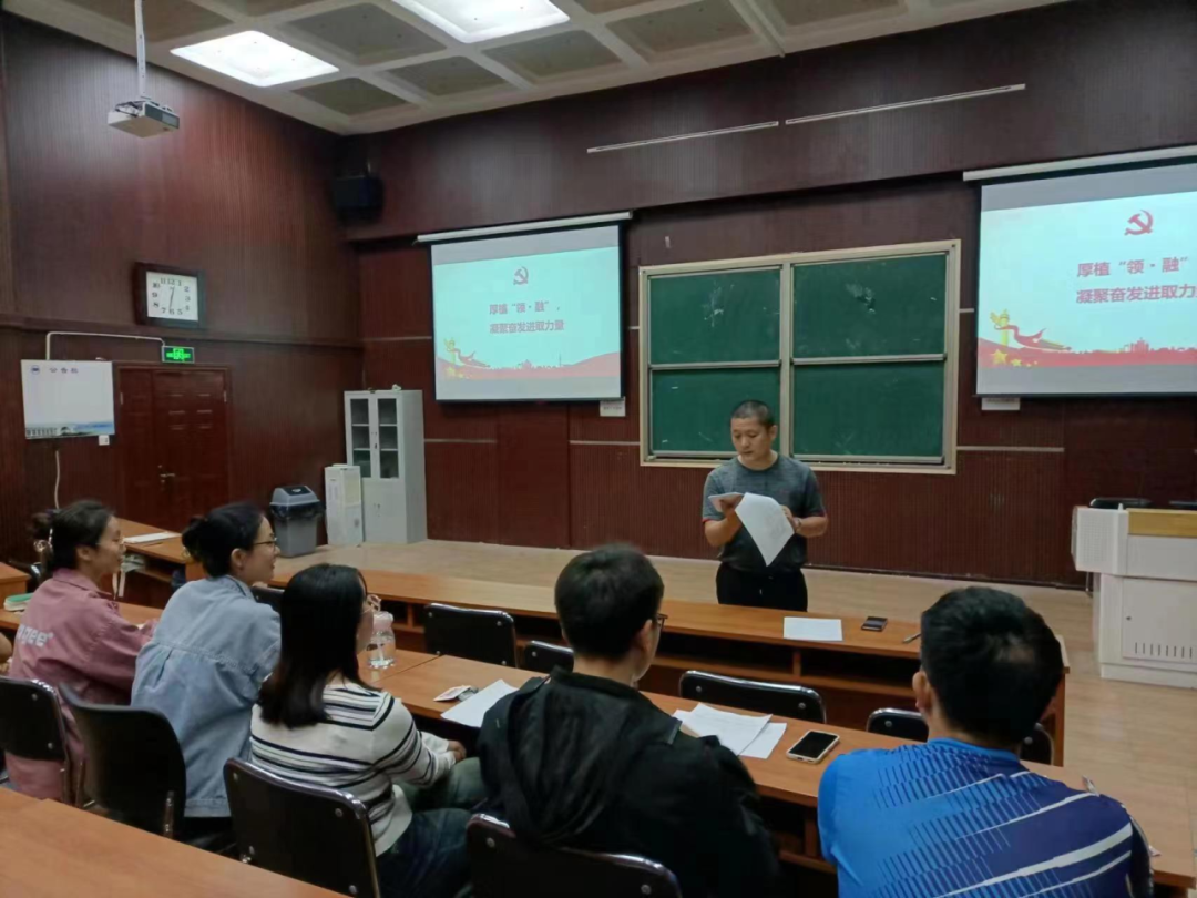 会议伊始,由李永峰书记带领全体党员进行《党的建设“领·融”工程》的学习,他将理论知识与具体实际相结合,强调要坚持以习近平新时代中国特色社会主义思想为指导,提高自身思想素养,充分发挥战斗堡垒作用,严格做到“七个有力”,进一步加强党支部的建设,为全院师生起到积极的引领作用。与会党员受益匪浅,这使他们在丰富知识的基础上,又进一步加深了对党建精神的理解,提升了自己的思想境界。最后,李永峰书记总结全会重点,规划了新学期的工作与学习方向,对支部党员能够进一步发挥先锋模范作用,为全院员工作表率寄予了殷切的期望。